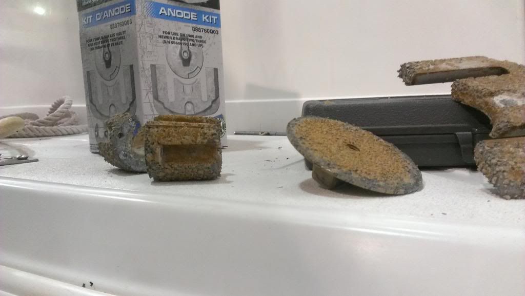 Compared to what I am used to seeing with salt water, those anodes do not look too bad. . . It seems that the outdrive might have taken more of a 'beating' than the anodes :noidea: