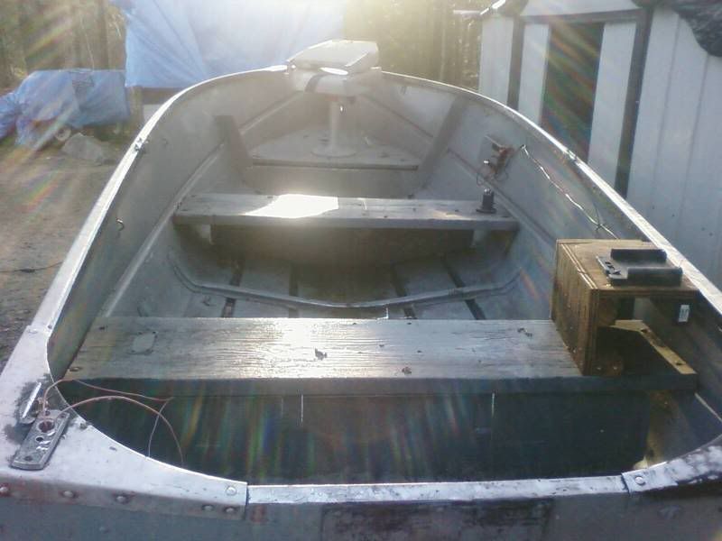 Still have quite a bit of polishing and a little wire brushing to do, but in the end, i think it looks better. I would not do this again..oh..and while im posting..Any suggestions on what i can do to set this old girl up inside for fishing? Heres a poor pic of it now..the wood box has my downrigger base on it.
