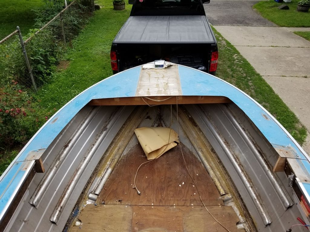 I bought this boat in hopes of turning it into a tender boat for duck hunting. I stripped it out and have found plans from another guys post on here but have a couple of questions. I cut the bow back and need to support the cut portion and trim it to cover up the cut metal. Any tips of covering it up would be appreciated!
