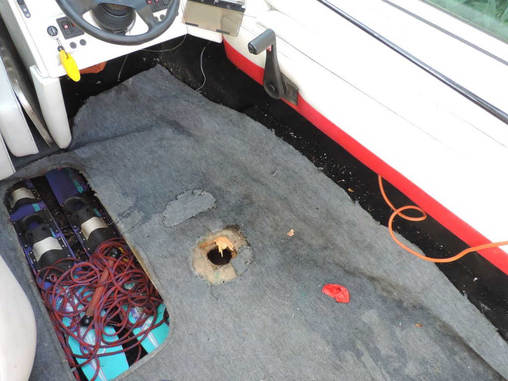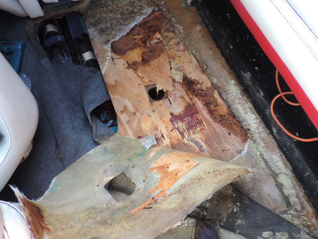 Ok, It's best to use a free web photo account like Photobucket and then load your pics from there. It will autosize your pics for you. Just copy and paste the IMG Code into iBoats. The pics are Soooo big it's impossible to really tell what you're doing. You don't HAVE to use epoxy. Your boat is made from Polyester resin and you can use Polyester resin to fix it. Then you WOULD use the CSM and Fiberglass Fabric. It's cheaper and works just as well. My best guess from what I CAN make out is you'll be using some 3/4" plywood and some resin and glass to patch it back in but... you could have other issues below the deck too. Is this and I/O or and Outboard powered boat??